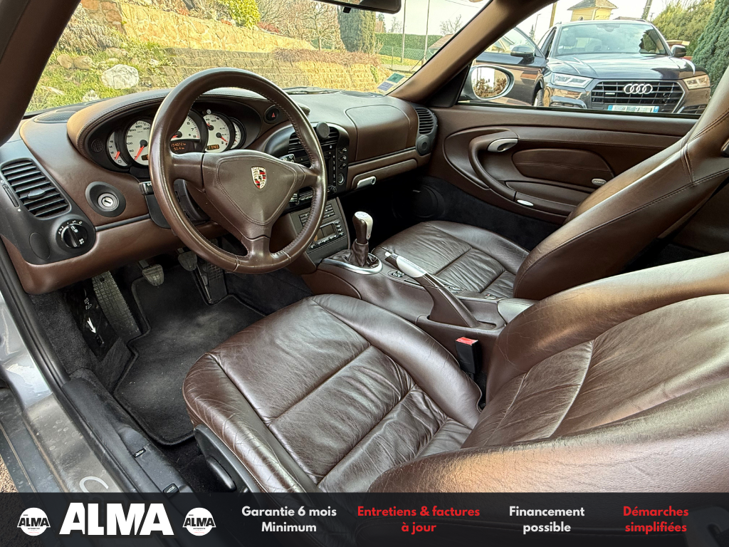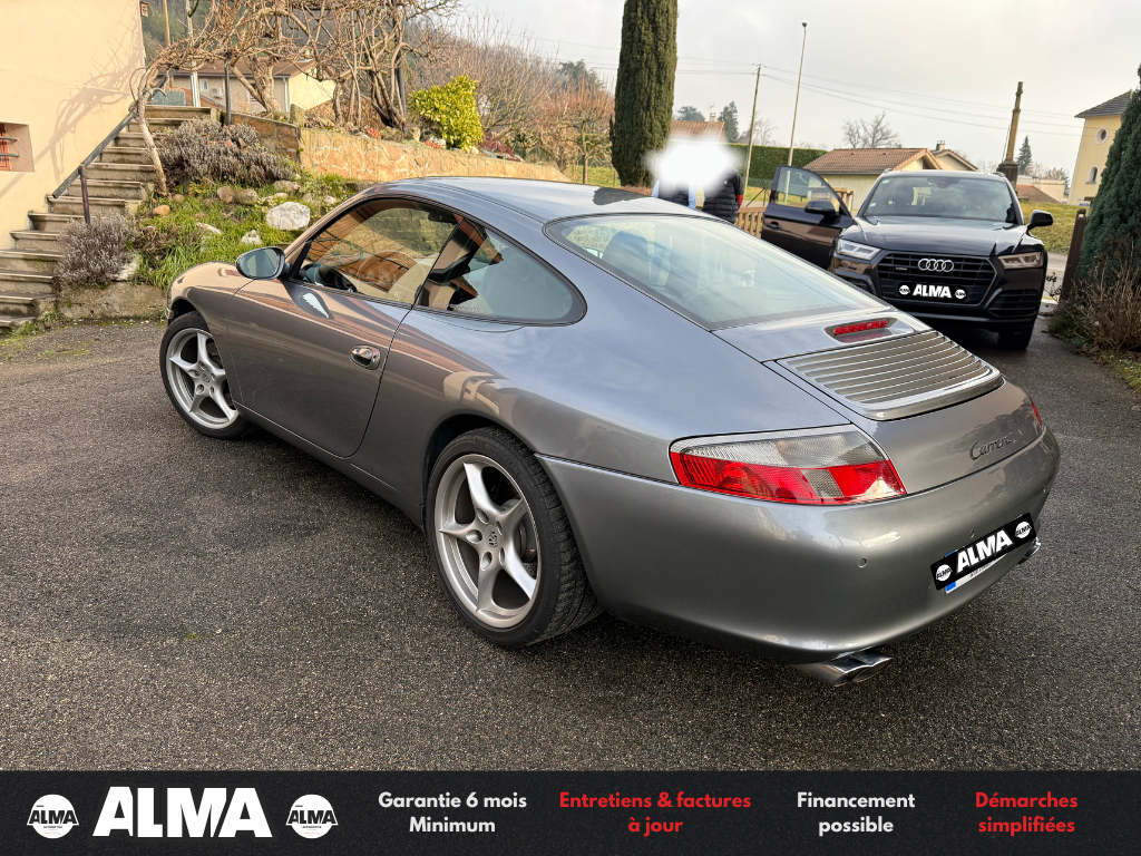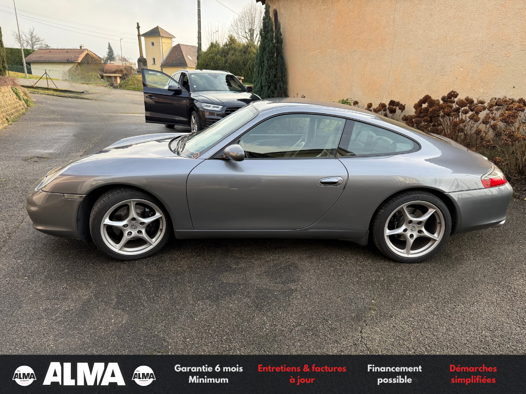 ALMA Automotive vous propose cette PORSCHE 911 Carrera type 996, année 2003, animée par le mythique Flat-6 atmosphérique 3.6 litres de 320 chevaux, associé à une boîte manuelle 6 rapports.
